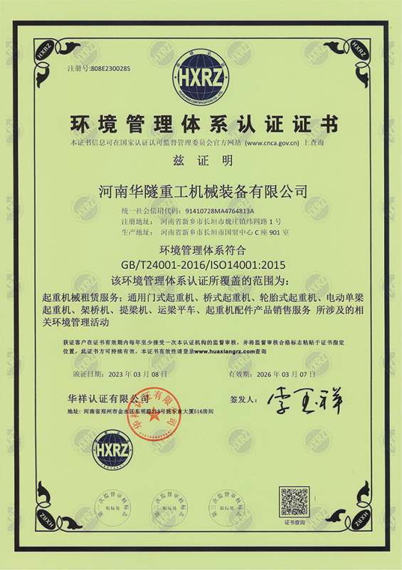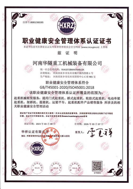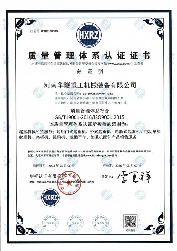 河南華隧重工機(jī)械裝備有限公司主要從事通用門式起重機(jī)、橋式起重機(jī)、電動單梁起重機(jī),輪胎式起重機(jī)、架橋機(jī)、提梁機(jī)、遠(yuǎn)梁平車、鋼絲繩電動萌蘆、卷揚(yáng)機(jī)、起重配件制造、銷售:起重機(jī)械租賃、安裝和維修,起重設(shè)備園收,機(jī)械設(shè)備維修,鋼結(jié)構(gòu)工程承包,橋梁工程及技術(shù)咨淘服務(wù),銷售五金制品、機(jī)電設(shè)備:建設(shè)工程監(jiān)理,建設(shè)工程設(shè)計(jì),各類工程建設(shè)活動,建筑勞務(wù)分包,建筑物折除作業(yè),施工作業(yè),工程管理服務(wù),土石方工程施工,裝如發(fā)運(yùn)。  公司已通過IS0國際質(zhì)量、環(huán)境、健康與安全三合一標(biāo)準(zhǔn)認(rèn)證,特種設(shè)備制造許可證和特種設(shè)備安裝改造維修許可證。擁有完熟的質(zhì)量管理體系。嚴(yán)格的管理制度,強(qiáng)大的生產(chǎn)能力和先進(jìn)的檢測手段,在保證產(chǎn)品質(zhì)量的同時,也具備了極強(qiáng)的市場競爭力。  公司堅(jiān)持科技創(chuàng)新為理念,產(chǎn)品質(zhì)量為核心,注重信譽(yù),建立了減信可靠、快捷、思速。便利周到的售后服務(wù)網(wǎng)絡(luò)。  我們擁有的技術(shù)專家和技術(shù)服務(wù)隊(duì)伍為客戶提供充善的售前技術(shù)支持和全天候的售后服務(wù)體系,讓您無后顧之憂,享受一站式的超值服務(wù)。  “華隧重工,伴您成功“是華隧重工永遠(yuǎn)的宗指,真被的希望與各界朋友攜手并進(jìn)。共創(chuàng)輝準(zhǔn)!